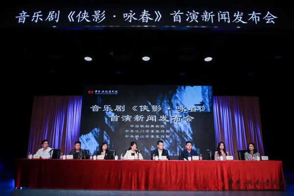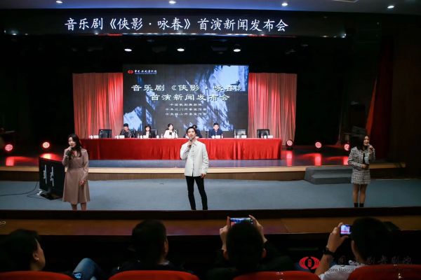 中國歌劇舞劇院副院長唐瑩、田彥,江門市委宣傳部副部長高鋼華、鶴山市委宣傳部副部長黃秋群以及音樂劇《俠影·詠春》的主創和主演代表參加發布會,中國歌劇舞劇院副院長唐瑩主持。發布會上,宣布了音樂劇《俠影·詠春》首演時間、卡司安排,以及項目背景與藝術特點亮點等信息,主要演員夏振凱、徐瑤、崔秀麗向來賓與媒體展示劇中精彩唱段并接受采訪。