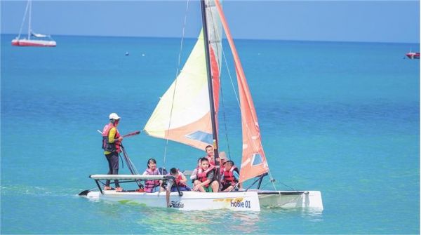 發力體育旅游,讓景區“動力”十足。2021年,天涯海角聯手蜈支洲島籌建了西部天涯海洋運動俱樂部項目,這是三亞大膽探索國企與民企混合所有制改革試點的成果。在推動傳統的觀光游向深度旅游體驗轉型的過程中,天涯海角游覽區實現由單一的海上快艇觀光產品,發展為擁有二十余項體驗感好、互動性強、趣味性足的“海陸空”旅游產品,為游客體驗高品質水上運動提供了新去處。