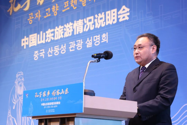 山東省文化和旅游廳二級巡視員王春生在致辭中表示,山東地處中國東部沿海,是人口大省、經濟大省、文化大省、旅游大省。“好客山東 好品山東”的品牌享譽海內外。山東區位優勢明顯,交通便捷;旅游設施完善,服務優越;獎勵力度加大,政策優厚。誠摯邀請韓國的新老朋友,到山東踏古尋蹤,感受歷史人文;探奇攬勝,欣賞山水畫卷;樂享人生,體驗精彩度假;大快朵頤,品味美食美酒,來一場文化之旅、觀光之旅、休閑之旅、美食之旅。