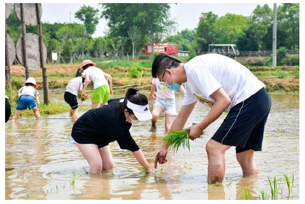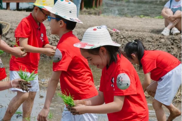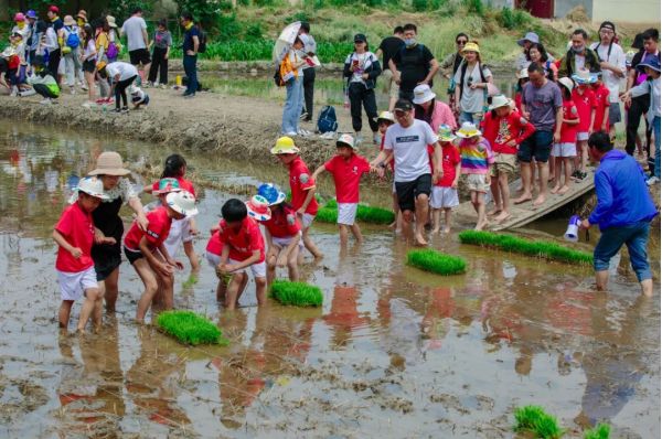 此時的長安唐村,不少家長帶著孩子,挽起褲腿踩進泥土中,在園區工作人員的帶領下,親手栽種下一棵棵秧苗,參與作物的自然成長。“很多游客都很珍惜插苗體驗的親子時光,對他們來說這種與自然親密接觸的機會很珍貴?!眻@區一名工作人員說。