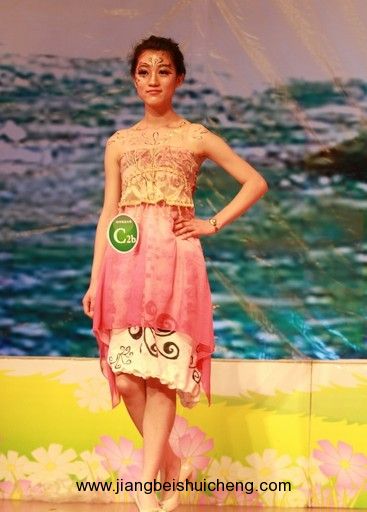 比賽中,各支參賽隊伍將廢棄蚊帳、塑料袋等元素合理利用,緊貼"綠色生活,青春承諾"這一主題,創(chuàng)意獨特,給在場的觀眾帶來了一場完美的視覺盛宴,贏得了陣陣掌聲。