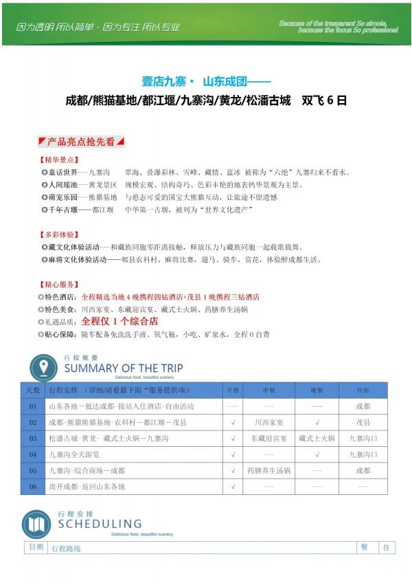 九寨雙飛6日游 聊城發(fā)團 純玩 無購物 成都 熊貓基地 都江堰 九寨溝 黃龍 松浦古城 ...... 價格 3190 3490 報名電話 0635 8681234