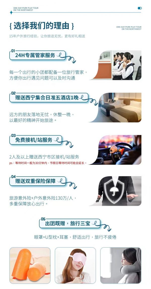 接機/站服務:本次活動提供西寧市內24小時接機/接站服務,工作人員會在您出發日期前一天21:30之前向您推送消息并與您聯系,如果超過時間沒有接到任何通知,請及時與報名處聯系。(接站等待時間一般為15-20分鐘,最長不超30分鐘,節假日拼單人數較多情況下客人等待時間可能會延長)。
