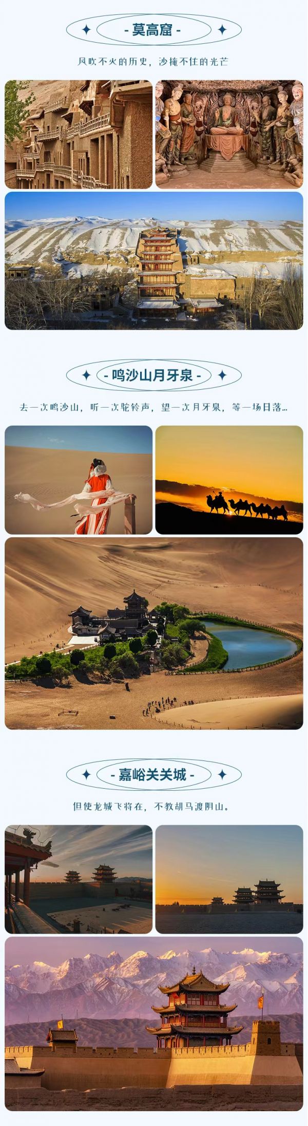 5.關于莫高窟門票的說明:正常門票238元/人,每天限6000張,可游覽八個洞窟。應急票148元/人,每天限12000人,可游覽四個窟。旅游旺季一票難求,請報團后及時到“莫高窟預約網”公眾號自行購買門票。(提前一個月內均可購買,具體方法可私信客服)