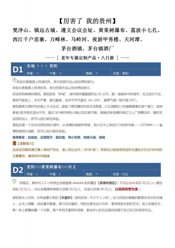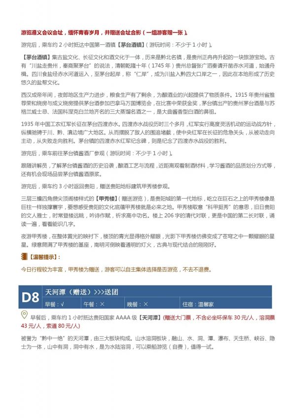 貴州8日游 聊城發團 純玩 無購物 凈山 鎮遠古城 遵義會議會址 黃果樹瀑布 荔波小七孔 江千戶苗寨 萬峰林 馬嶺河 夜游甲秀樓 天河潭 茅臺酒鎮 茅臺鎮酒廠 發團時間 20230615-20230622 價格 4480 報名電話 0635 8681234