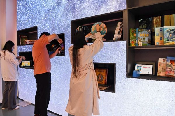 戴上VR眼鏡,手握方向操控桿,進入宇宙大爆炸、冰河世紀、恐龍滅絕、人類起源等模擬場景;行走在利用聲光電等多元科技手段營造的“未來世界”立體閱讀空間中,看著搜索出的信息詞條慢慢朝你靠近;在三維立體借閱室中翻看各類有趣的書籍,智能可視系統生動呈現出書中所描述的場景……在浙江省嘉興市圖書館元宇宙閱讀體驗館,閱讀被重新定義了另一種可能,科技與閱讀實現了完美融合。