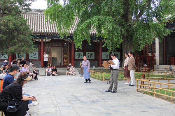 劇中,1937年七七事變前夕,為盡可能保留華北古建筑資料,梁思成、林徽因等對重要古建進(jìn)行搶救性測繪,在恭王府巧遇古建老匠人,自此展開了一段長達(dá)20余年的知己相交之緣。在室外的第一幕表演結(jié)束后,主演們會引導(dǎo)觀眾從嘉樂堂院落走進(jìn)主殿;而在觀眾駐足展廳中的老式監(jiān)視器前,看完黑白默片版的話劇第二幕之后,演員們又會走進(jìn)展廳,開始第三幕的表演。