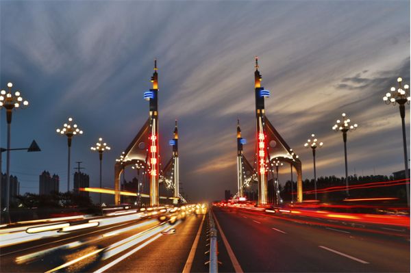 興華路徒駭河大橋全長近384米,大橋采用雙向6車道設計,很是雄偉壯觀。