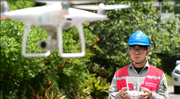 服務隊員應用無人機排查線路隱患,經過1小時左右的飛行,共巡視3.5公里線路、31基電力桿塔,在高考前夕做足了線路的“健康體檢”