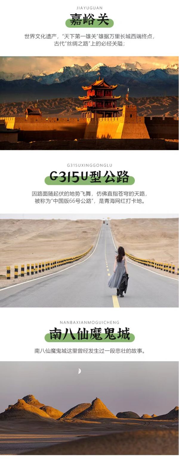 2. 嘉峪關景區內部講解,三個大景點,單獨收費,費用自理。