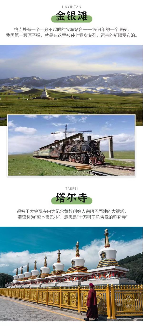 從西寧前往【塔爾寺】塔爾寺又名塔兒寺,地處青海省省會西寧市湟中區城區,創建于明洪武十二年(1379年)。得名于大金瓦寺內為紀念黃教創始人宗喀巴而建的大銀塔,藏語稱為“袞本賢巴林”,意思是“十萬獅子吼佛像的彌勒寺”,國家AAAAA級旅游景區。酥油花、壁畫和堆繡被譽為“塔爾寺藝術三絕”,另外寺內還珍藏了許多佛教典籍和歷史、文學、哲學、醫藥、立法等方面的學術專著。每年舉行的佛事活動“四大法會”,更是熱鬧非凡。塔爾寺的酥油花雕塑也是栩栩如生,遠近聞名。