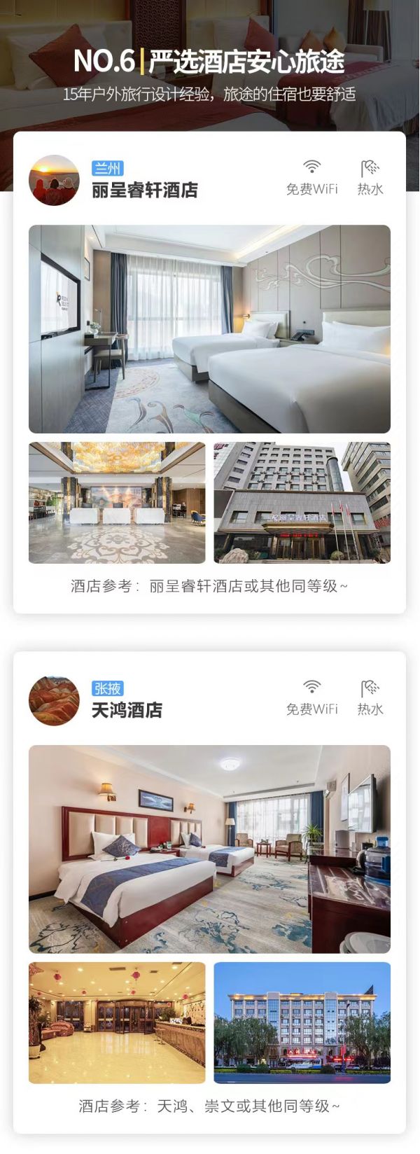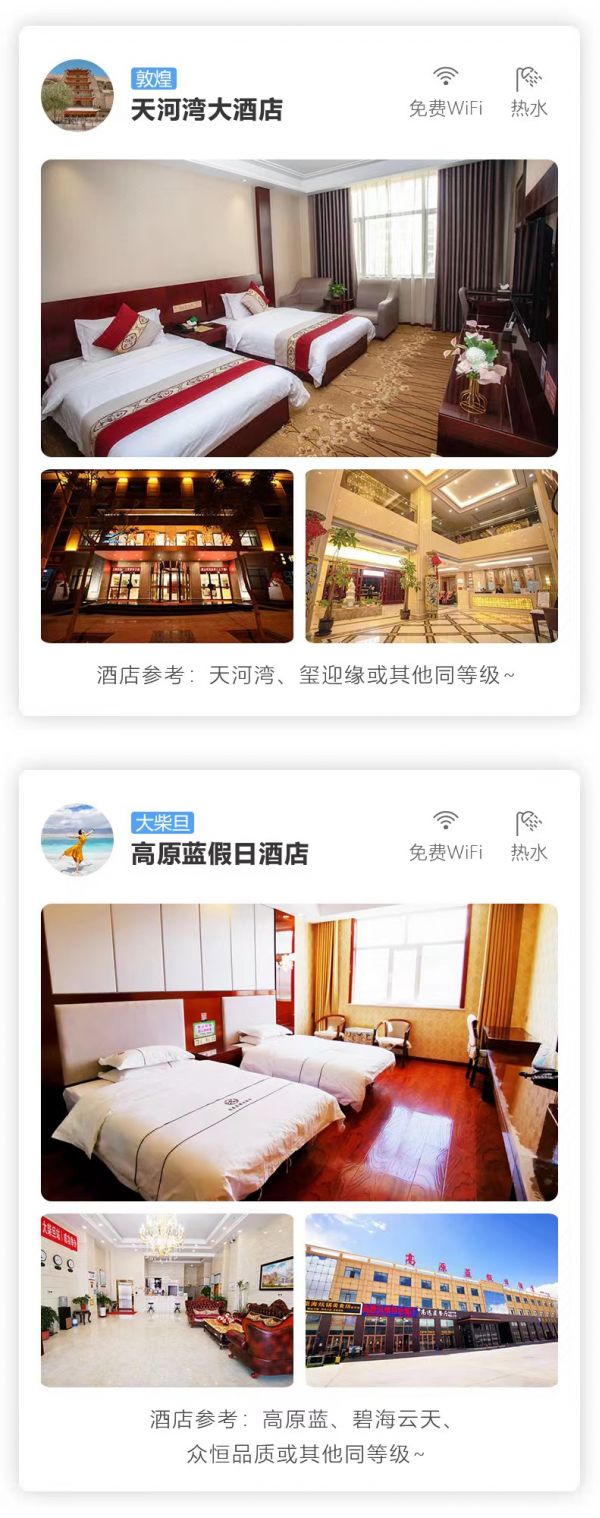 3. 如遇莫高窟門票售罄,未能預約成功,無法安排游覽,我們將調整行程前往游覽莫高窟姊妹窟“西千佛洞”,并退還差價170元/人,車費由我方承擔,望您諒解。