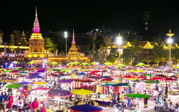 晚餐后打卡網紅地-湄公河·星光夜市,湄公河·星光夜市集結了我國云南、泰國、老撾、越南、柬埔寨等等各地的創意攤販。各種具有創意的手工藝品是游人的最愛。在這里你可以真實感受到湄公河流域的趕擺文化。各種極具地域特色的衣服,五顏六色,是女孩子們的最愛。