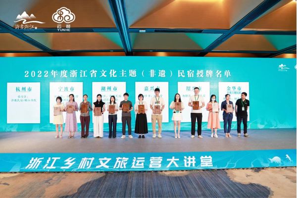 活動現(xiàn)場,2022年度等級民宿和文化主題(非遺)民宿頒牌儀式舉行,云和縣崇頭鎮(zhèn)梅源村、石塘鎮(zhèn)小順村、赤石鄉(xiāng)赤石村代表發(fā)布了“