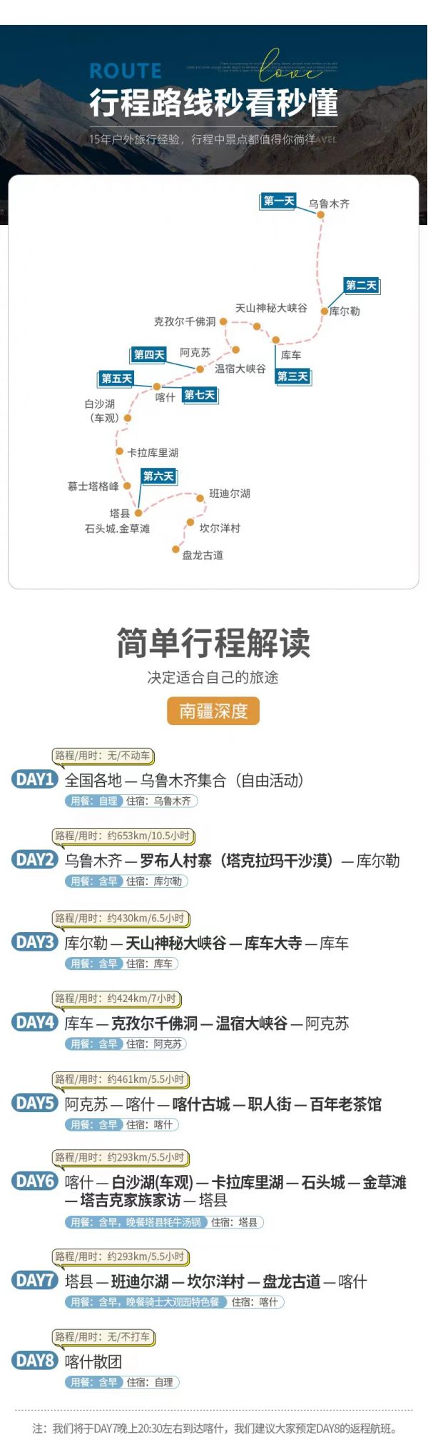 (2)中國統一使用北京時間,新疆位于東六時區,故當地作息時間與內地相比有2小時時差(推后2個小時)。旅游行程一般安排在早上8點-晚上21點。