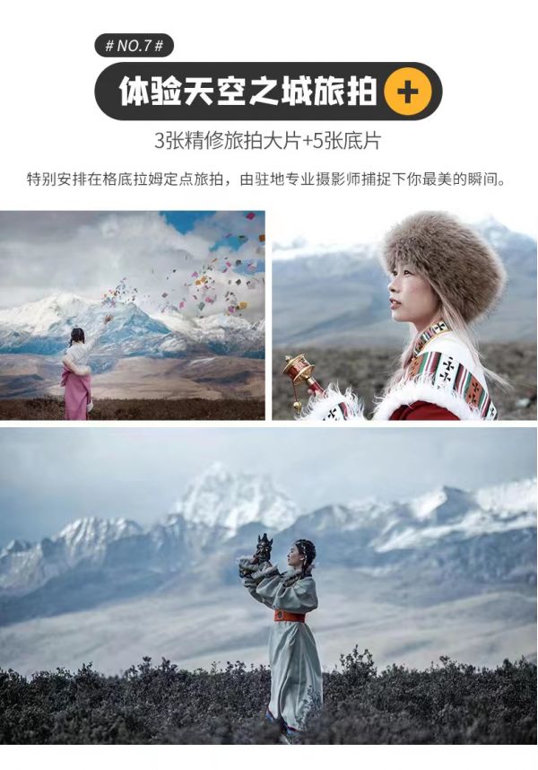 5、贈送體驗天空之城-格底拉姆定點旅拍(3張精修旅拍大片+5張底片)