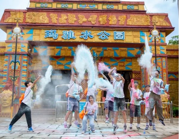 除了彩虹跑,盛夏的水上樂園也迎來了畢業生們的狂歡。在廣州長隆水上樂園,數百名來自廣州各校的畢業生們,手持各種水戰道具,在造浪池邊盡情釋壓,充分享受成績開分前極致、純粹的快樂。