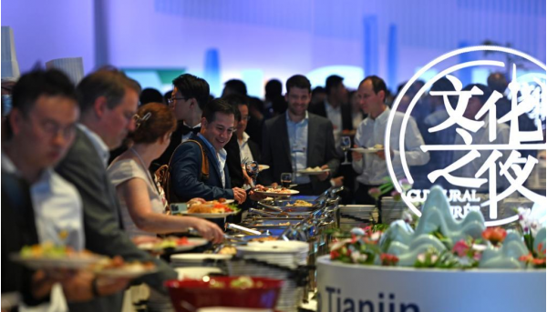 當(dāng)晚,第十四屆夏季達(dá)沃斯論壇文化之夜在天津梅江會展中心舉行。與會嘉賓伴隨著文藝演出,品嘗天津特色美食,體驗中國傳統(tǒng)文化
