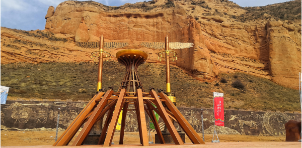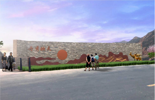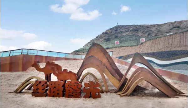 井部落文化廣場以當(dāng)?shù)爻鐾恋纳尘幕拍惯z址為文化線索,結(jié)合現(xiàn)有的鷹巖崖壁景觀和山谷平地,以出土“鷹”首杖的“鷹”為圖騰元素,規(guī)劃“鷹巖祭天”活動場景。這里的摩崖石刻藝術(shù)地展現(xiàn)了古絲綢之路的繁華盛況,可以讓人穿越時空,回味沙井文化歷史。