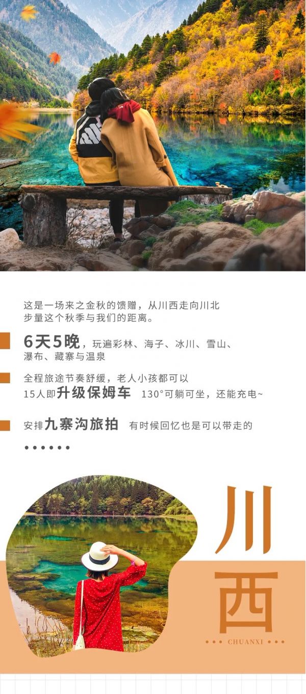 4、九寨溝景區(qū)實行分區(qū)域開放,開放區(qū)域為溝口經(jīng)諾日朗瀑布至長海,扎如溝的扎如寺及日則溝的鏡海;其中,長海、五彩池、鏡海、諾日朗瀑布、樹正群海、雙龍海瀑布、扎如寺等景觀原則上為步行游覽區(qū),具體游覽方式請聽從隨車講解員安排。