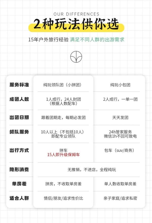 服務:優(yōu)秀領隊服務(2-10人司機兼向導,11人及以上配專職領隊,已含領隊食宿門票);