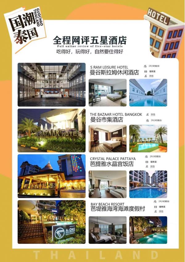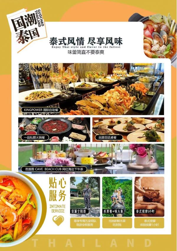 酒店早餐后前往【沙美島samet國家公園自然保護區】(游玩約4H)位于泰國曼谷東南方的羅永,最吸引人之處在于擁有全泰國最優美的沙灘,一年四季均可享受風浪板、浮潛滑水等水上活動,還擁有芭堤雅所沒有的寧靜閑適。去芭堤雅,一定要去沙美島,因為沙美島的確是名副其實的“沙美島”。那黃里透白,面粉一樣細嫩的海沙,鋪成又長又寬的沙毯,為太平洋鑲上了金色的花邊。島上那椰子樹、棕櫚樹等構成的熱帶叢林,像忠誠的衛士守護著漂亮的沙灘,也守護著來自世界各地的觀光客和海泳者。沙美島不僅有美麗的熱帶風光和第一流的海泳場,還有那別具特色且價廉物美的熱帶水果和海鮮燒烤品嘗.(島上的付費娛樂活動供游客自主選擇與旅行社無關。)【泰式按摩】(約60分鐘),擁有四千多年歷史,手法涵蓋了按、摸、拉、拽、揉、捏等動作??梢允谷丝焖傧?,還增強關節韌帶的彈性和活力,促進體液循環。來到新晉網紅下午茶【cave beach club】(自由活動時間不少于90分鐘),藍天白云下,面朝大海,享受海風,假裝身在夏威夷,芭提雅應該沒有比這里更新更適合打卡的下午茶場所了吧。