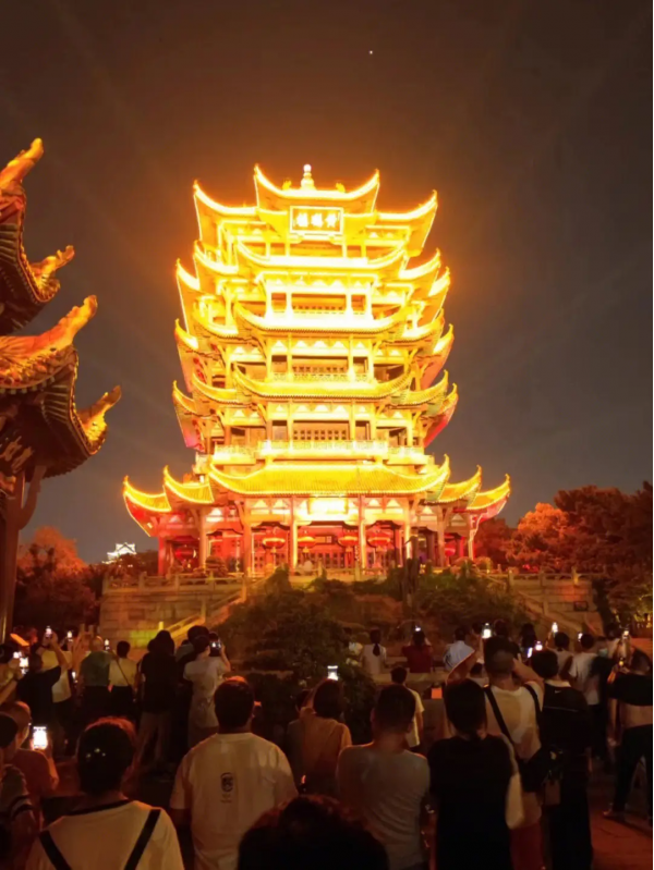 作為文化和旅游部第一批全國(guó)智慧旅游沉浸式體驗(yàn)新空間培育試點(diǎn)項(xiàng)目,“夜上黃鶴樓”以黃鶴樓公園為載體,選取園內(nèi)8處景點(diǎn),通過(guò)“光影+演藝”的方式,讓游客在徐徐展開(kāi)的光影畫卷中走入千年歷史。