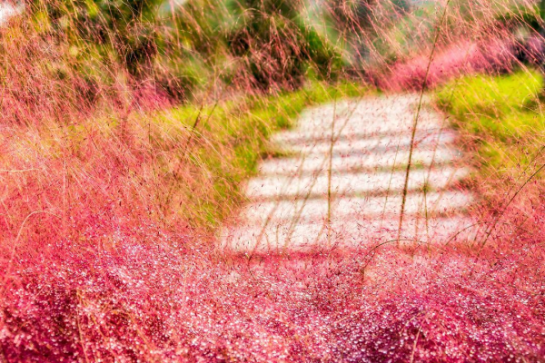 粉黛亂子草有著極強的觀賞性,11月初,它株高可達30到90厘米,每到金秋時節,粉紅色的花穗如同發絲從基部長出,形成近乎純色的花叢在綠葉的襯托下極具美感。