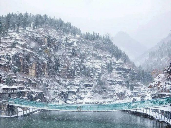 每到冬季,潭溪山便呈現出一幅夢幻的冰雪畫卷,給原本靜默蕭瑟的冬天,披上了一層晶瑩剔透的冬日新裝。潺潺流水在時光中靜止,懸崖瀑布在浩蕩中停駐,幻為難得一見的奇觀,冬日潭溪山在層層冰掛的裝扮下重煥生機。冰掛千奇百怪形狀迥異,在陽光下變幻出晶瑩剔透的光澤,渾然天成。