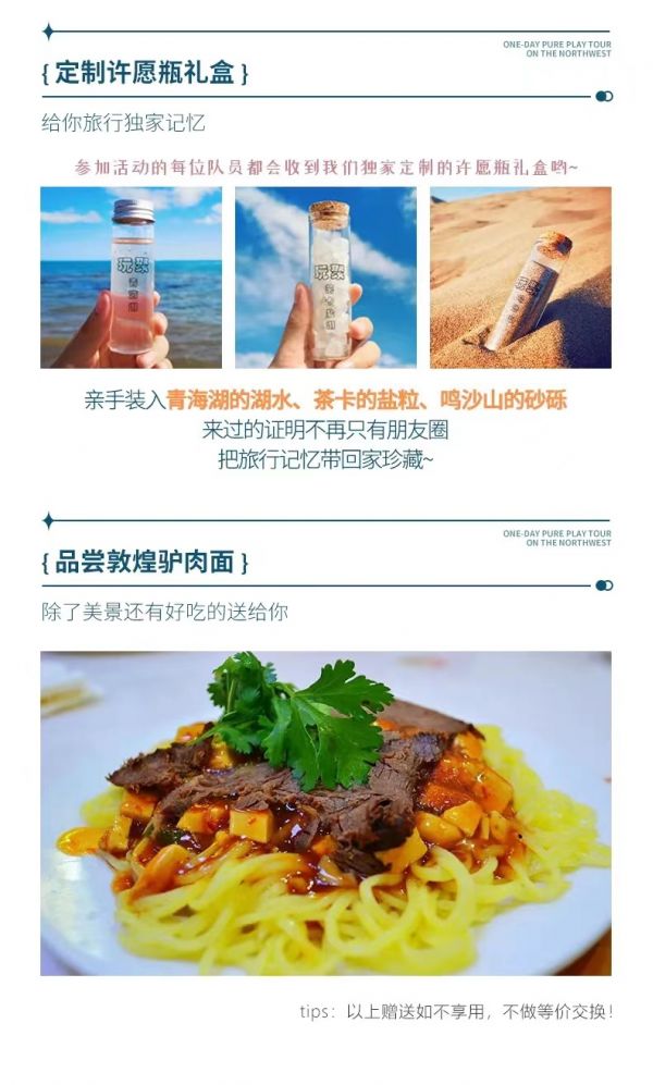 2.當(dāng)天一路人煙稀少,請(qǐng)大家務(wù)必準(zhǔn)備好飲用水及干糧。柴達(dá)木盆地公路開闊,行車速度較快,自由活動(dòng)時(shí)一定聽從領(lǐng)隊(duì)指揮,注意安全