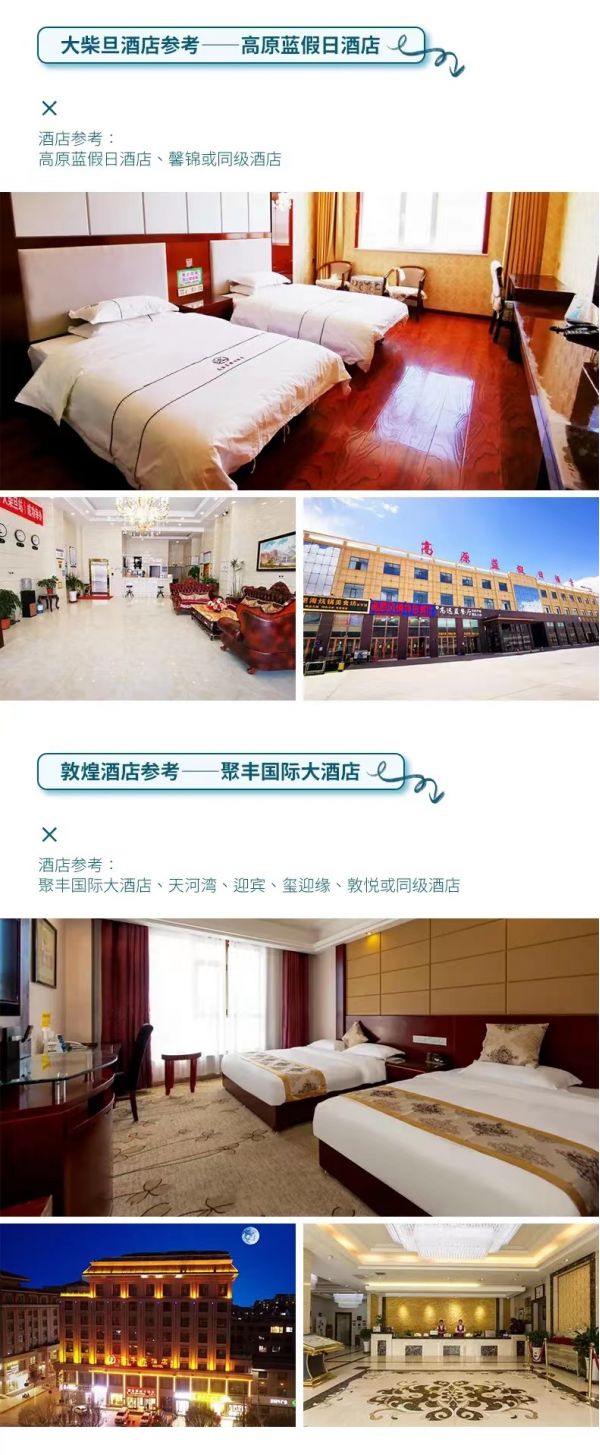 3.到達(dá)西寧后自行前往指定酒店入住,辦理入住時(shí)需要交押金,房費(fèi)已付,押金自理,報(bào)姓名拿房卡。