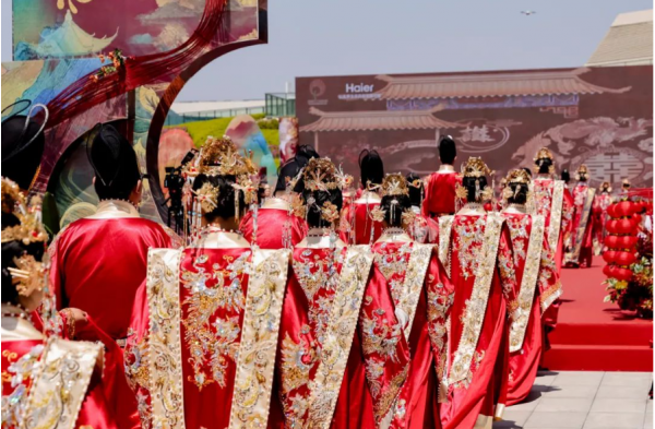 這個世界最美的風景是人”。集體婚禮讓新人與美景結合,更具感染力。比如,在紹興迎恩門風情水街,宋韻婚禮成為“引流利器”;在青島,即墨古城每年都舉行集體婚禮,悠揚的古樂下,新人身著傳統中式婚服,優雅而華美……