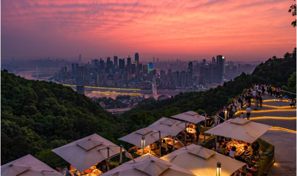 6月的傍晚,重慶嘉陵江畔,夕陽的余暉為江面、街道抹上了一層淡淡的粉,顯得格外動人。與江面的靜謐不同,街道上人流開始涌動,炊煙裊裊升起,這才剛剛進入一天中最喧鬧的時段。