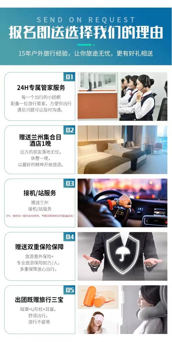 (2)贈送2人及以上蘭州市區(qū)接火車服務;4人以上接機服務,23點后由于運管規(guī)定不能接機/接站,敬請諒解;