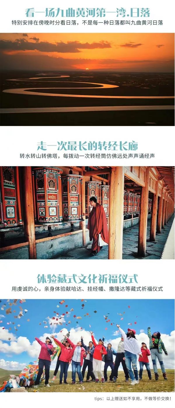 請對應使用我方秘境甘南7日行程,因使用其它行程造成的投訴,責任自負;請仔細閱讀以上行程文檔,同意并保證遵守我方安排,以免為您帶來不必要的麻煩;如產(chǎn)生合同糾紛或人身意外事故,按《中華人民共和國合同法》、《道路交通法》、《保險賠償條例》裁定;本行程作為旅游合同附頁與旅游合同同等法律效力。