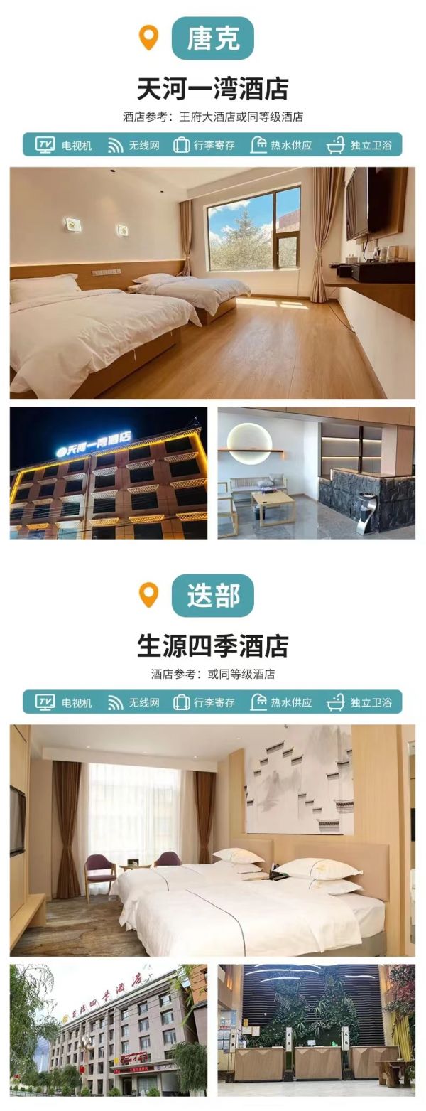 住宿:6晚當?shù)厥孢m酒店,確保酒店干凈衛(wèi)生,溫馨舒適。因沿途高原藏區(qū)條件有限,如果酒店設施沒有達到您的期望,敬請諒解。參考酒店如下:
