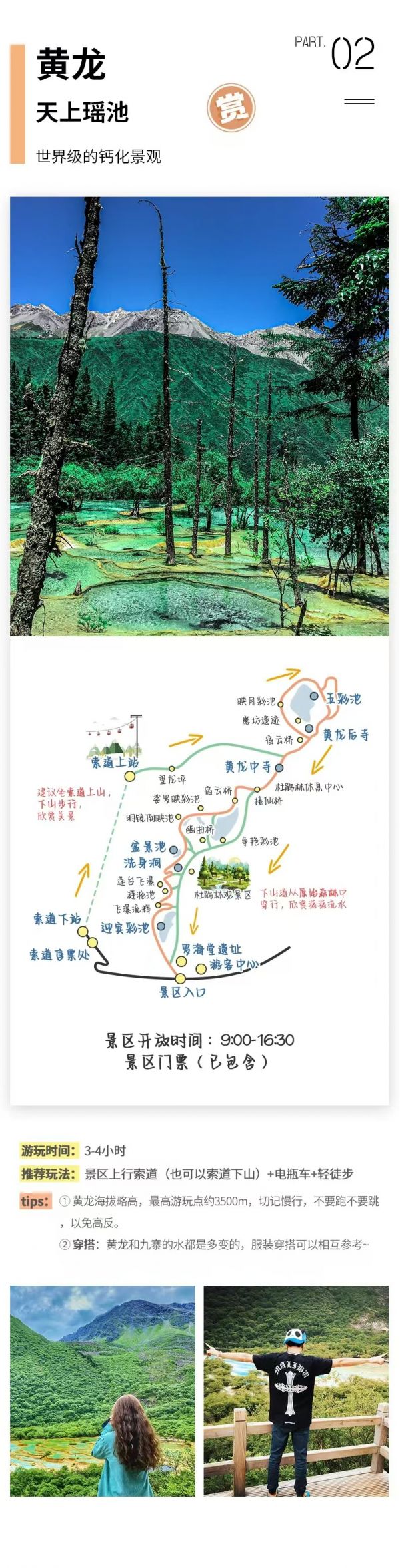 (2)特別提示:12月16日-3月31日期間黃龍索道停運,屆時需步行上下游覽黃龍景區,敬請知曉。