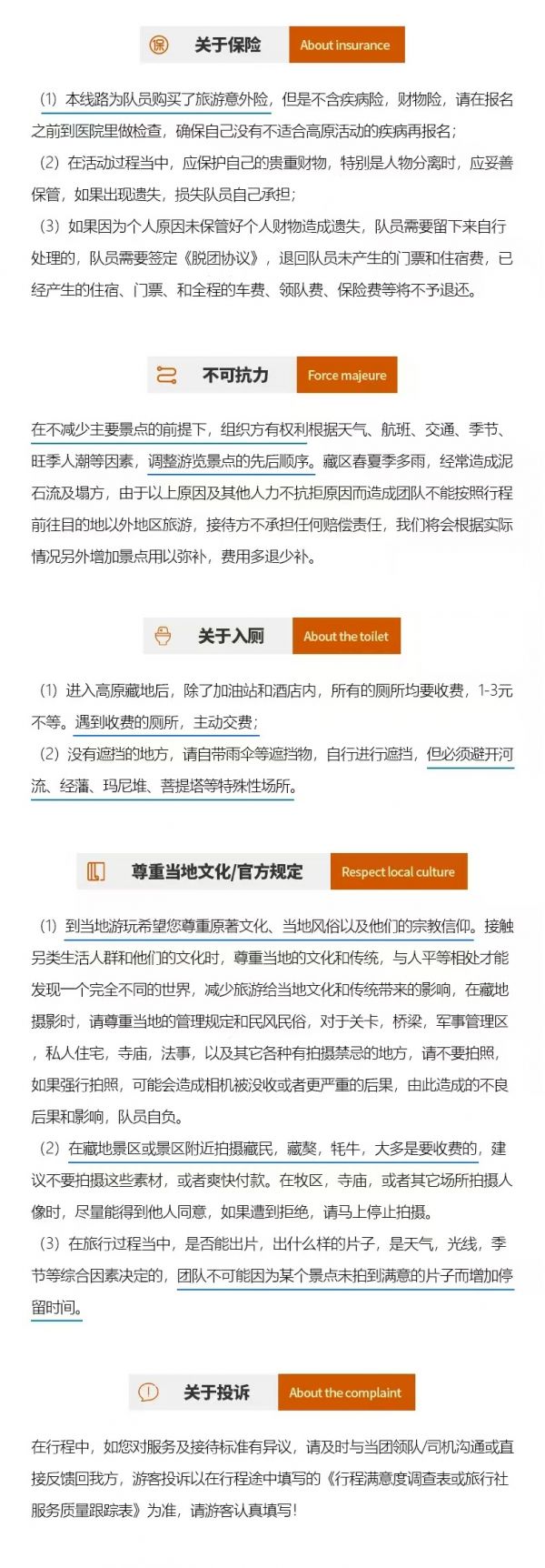 (5)走進藏家藏文化體驗由領隊/司機視實際情況靈活安排在D2或D3;如因九寨溝防疫政策規定,走進藏家暫停營業,則晚餐調整為團餐,望您諒解。