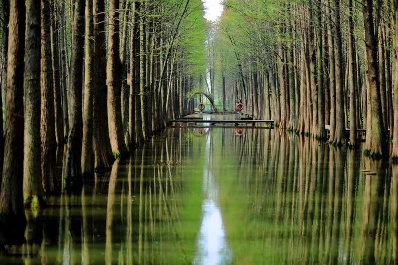 午餐后,下午前往【李中水上森林公園】,拍攝斜陽下的奇妙森林,進入景區你也可以泛舟于縱橫交錯的河流之上,或置身于高大的水杉林之中,這兩者都可以讓你欣賞到“樹在水中長,鳥在身邊飛”的生態美景。