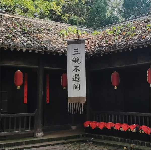 參觀景陽岡遺址,觀察“三碗不過岡”酒肆復原場景。