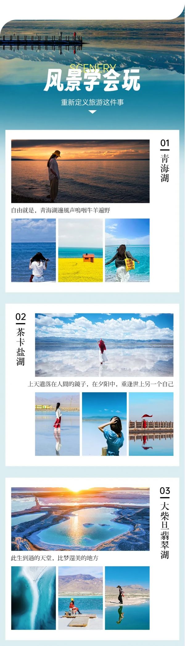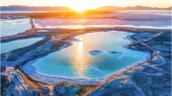 結(jié)晶之上是一層薄薄的鹵水,將天空、云朵和對(duì)岸的山都倒映在白色的湖里,非常漂亮,所以也被稱(chēng)為“中國(guó)的天空之境”。可以乘坐景區(qū)內(nèi)的小火車(chē)前往景區(qū)深處游玩,如果不乘坐小火車(chē),也可以沿著鐵軌向湖深處散散步拍拍照片也是非常愜意。