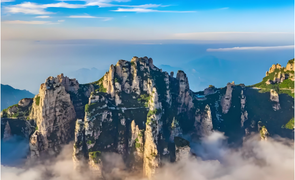 早餐后赴國家AAAAA級景區-白石山景區,從東門進入景區后上山。隨后游覽白石山國家地質公園,它位于河北省淶源縣城南15公里,雄居八百里太行山最北端,景區面積54平方公里,最高峰云都峰海拔2096米。整個景區集黃山之奇、華山之險、張家界之秀于一身,并可用“雄”、“險”、“奇”、“幻”4個字加以概括。峰高谷深,峰林壁立,落差可達600米。戰國時度嶺分燕趙,遼宋時一山分兩國。白石山奇峰林立,絕壁橫陳,險壑縱布,到處直上直下如刀削斧劈,少曲線,多棱角。尤其是峰林地貌帶,高差大,密度大,是我國惟一的大理巖峰林景觀。