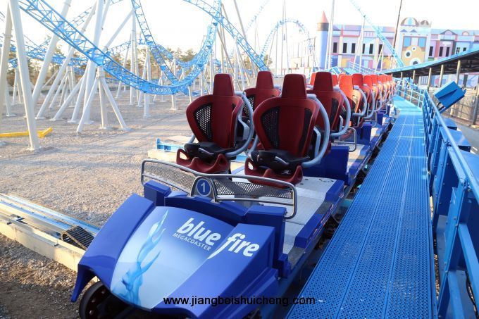 【藍火過山車】鎮園之寶世界之最—藍火過山車,由德國馬克公司原裝進口,總造價1.2億,全長1098米,至高點38米,最高時速可達100公里,采用火箭發射式原理,讓游客體驗瞬間離地的超刺激、驚險快感。