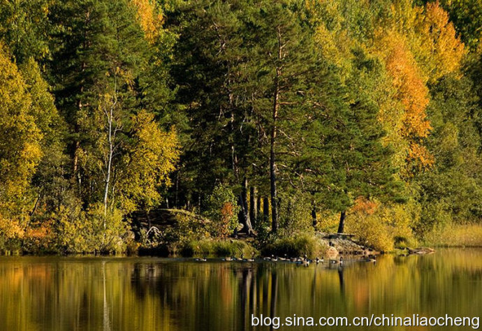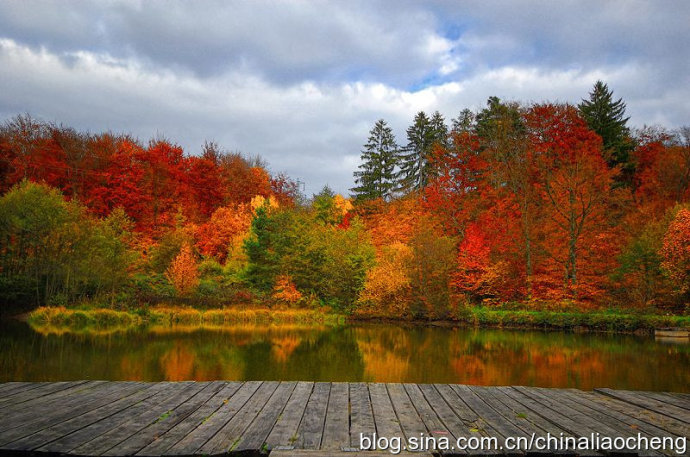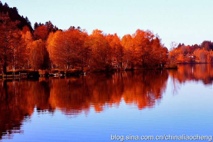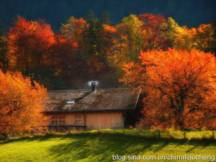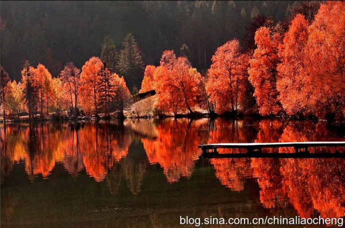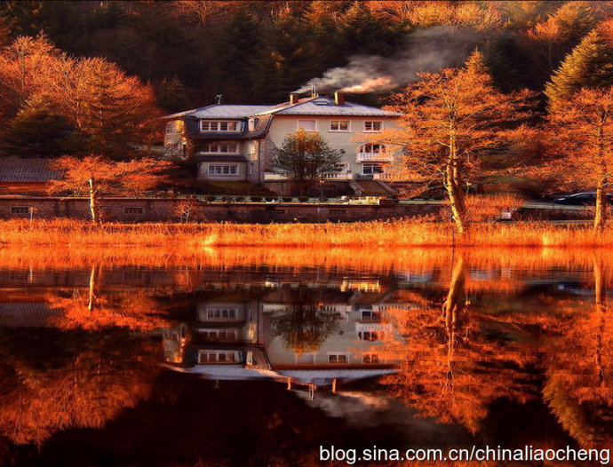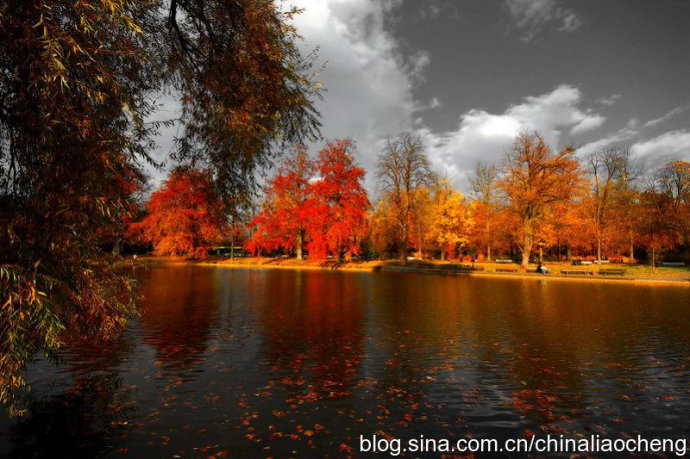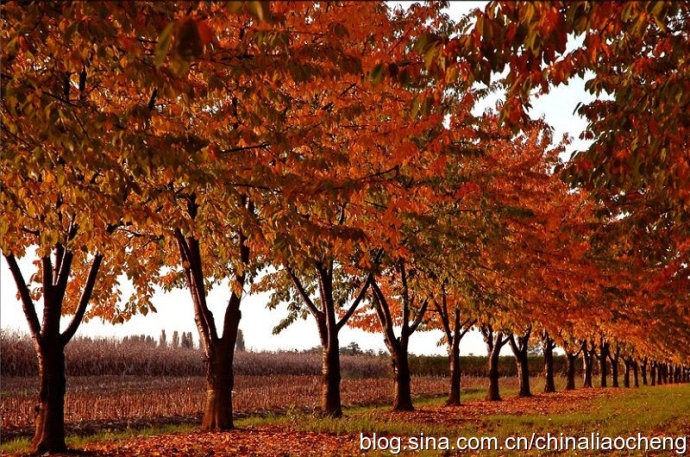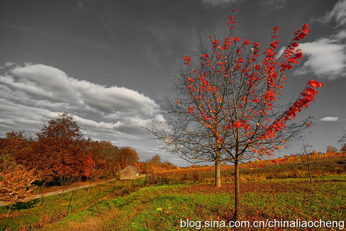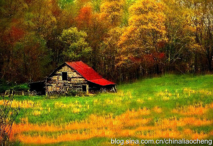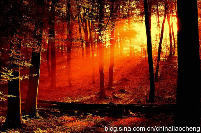 最動人是秋林映著落日。那酡紅如醉,襯托著天邊加深的暮色。晚風帶著清澈的涼意,隨著暮色浸染,那是一種十分艷麗的凄楚之美,讓你想流幾行感懷身世之淚,卻又被那逐漸淡去的醉紅所懾住,而情愿把奔放的情感凝結。