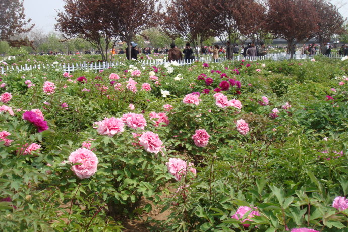 它是以明清以來趙氏園、桑籬園、桂陵園等十幾處牡丹園林為基礎,于1982年修建。該園占地近2000畝,1100多個品種,其中百年以上株齡的古牡丹一百余株。園內還有牡丹的姊妹花——芍藥三百余個品種。間植碧桃、夏蓮、秋菊、臘梅、月季、玫瑰等數百種花木,競相比美。每年四月中旬至五月上旬,百萬株牡丹競相開放,五彩繽紛,千姿百態,爭奇斗研,令人目不暇接。國內外游客絡繹不絕,形成“花四海,人如潮”的壯觀場面。