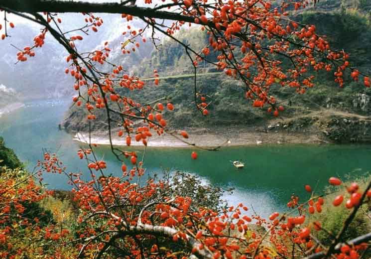 蟒河旅游風景區位于山西省陽城縣東南蟒河鎮與河南省濟源市交界處,面積120平方公里,主峰海拔1572米。蟒河景區有“秀、險、幽、奇”四大特點,享有“北方小桂林”的美譽。這里一年四季均有迷人勝景,尤以秋天看層林盡染最為賞心悅目。蟒河水從蟒河村東流過,水清如碧玉,奔流似巨蟒;莽山又在蟒河村東流過, 水清峰錯列,鬼斧神工,妙境天成,有千峰擁黛,萬壑云飄之象。景區內懸崖飛瀑直瀉,深谷流水淙淙,百鳥啼鳴林間,野花競相開放。起源古老的珍奇植物青檀、蘭草、山萸樹、領春木、牛鼻酸、紅豆杉星散其間,獼猴、大鯢、麝、金貓、金雕、金錢豹等或嬉驃林莽,或翱翔藍天。望莽孤峰拔地而起,狀如巨塔,水簾洞飛珠成簾、集水萬狀;試劍峰如干將出鞘,鋒芒逼天,蟒湖上碧波漣漪、白帆點點;鍘刀縫好像天斧劈開,石人峰酷似云游行僧;窟窿山中通一孔令人稱奇。山色之優美,古跡之奇異,令人耳目一新。