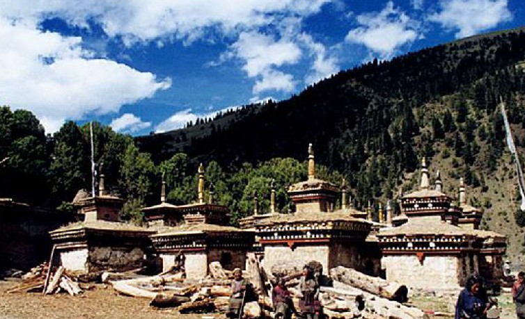 卡瑪多塔林位于類烏齊縣國道317線右側,距縣城25公里。塔林依山位傍水、風景秀麗、古木參天、蒼松翠柏、四季常青。在蔥郁翠柏中有一座別致的小經堂,主供蓮花生大師像,左右各豎有幾根高大的轉經筒。傳說,過去這兒有108個塔,現已恢復和修建的塔有幾十座。其造型各異,別具一格,既有要求嚴格的八佛塔,也有方形怪塔;既有幾米高的大塔,也有不到三米的小塔。