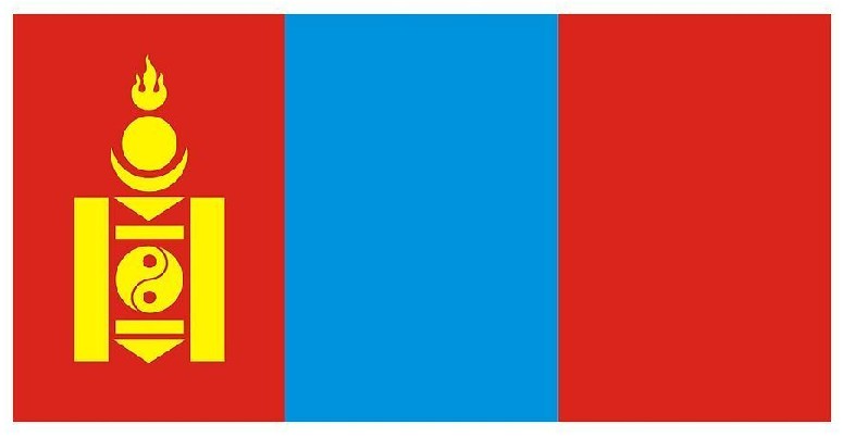呈橫長方形,長與寬之比為2:1,旗面由三個垂直相等的豎長方形組成,由兩塊紅色(兩邊)及一塊藍(lán)色(中間)作為背景,靠旗桿處的紅色部分有一個黃色的“索永布”,索永布中的火焰是“吉祥和興旺的種子”,三條火舌蒙古國旗象征了過去、現(xiàn)在與未來,而太陽和月亮是蒙古人民傳統(tǒng)的象征物。 火、日、月三者結(jié)合,表示國家的昌盛,中央的太極圖象征了國家的和諧,下方的兩個三角形等同于箭,向下的三角形表示以武力捍衛(wèi)家園,太極圖上下方的兩條長方形有堅持正義和忠實之意,左右兩方的長方形是一個城墻,暗示了全民團(tuán)結(jié),比墻更加的堅固。另外,旗面上的紅色和藍(lán)色是蒙古人民喜愛的傳統(tǒng)顏色,紅色象征快樂和勝利,藍(lán)色象征忠于祖國,黃色是民族自由和獨立的象征。