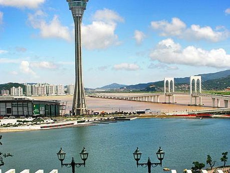 澳門新的標志性建筑——澳門觀光塔,總耗資10億元澳門幣,1998年開始興建,經過3年的建設,于2001年12月19日竣工揭幕,并正式接待游客。澳門特別行政區行政長官何厚鏵和澳門旅游娛樂有限公司總經理何鴻燊為澳門觀光塔亮燈。從此,澳門觀光塔成為澳門新的旅游景點,大大促進了澳門旅游業的發展。該塔動工時,正值亞洲金融危機嚴重沖擊澳門經濟之時,可是澳門著名實業家何鴻燊卻應對超前,看好回歸后的澳門市場,毅然投資興建這座觀光塔。