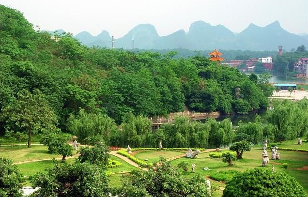多種多樣的樹木,把公園完全覆蓋在綠樹濃蔭之下,和外面完全分隔開,使整個公園顯得特別寧靜。漫步于園內的彎彎曲曲的小徑,穿插于綠樹林蔭之中,在清幽恬靜的環境下,無拘無束,享受夏日送來的柔柔輕風,的確是賞心樂事。